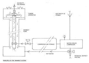The Mammut system is a patented, fossil-free and CO₂-free energy storage solution designed to meet the growing demands for a stable, flexible, and renewable electricity system. The system is based on robust technology—air-lift pump (mammoth pump), compressed-air storage, and a turbine-driven generator—combined into a unique and scalable solution that stores electricity when it is cheap and available, and delivers it back when demand is highest.